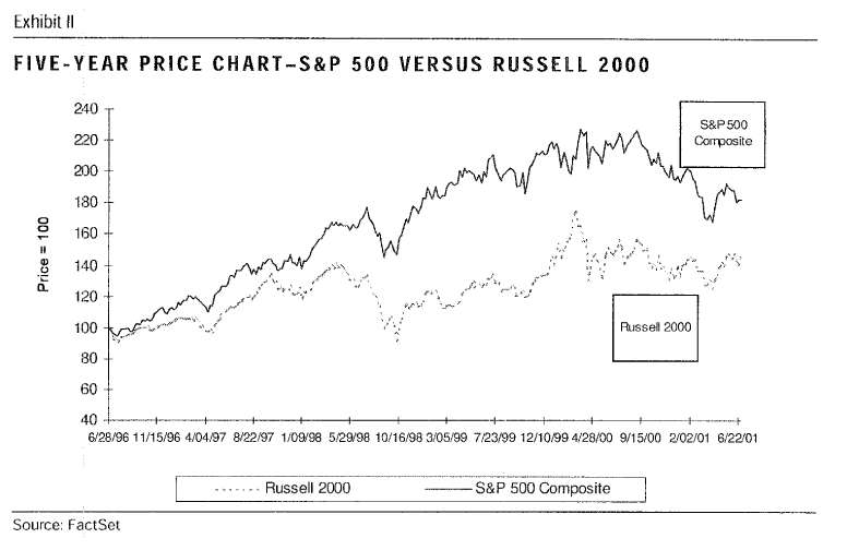 In the Fall of 2001, Donoghue, Murphy, Buckley and Danielle C. Kramer produced a further follow-up to the original report called Endangered Species 2001 (.pdf). Their thesis in the further follow up should be of particular interest to we value folk. Putting aside for one moment the purpose of the report (M&A research aimed at boards and management of Darwin’s darlings stocks to generate deal flow for the investment bank), it speaks to the very fertile environment for small capitalization value investing then in existence: