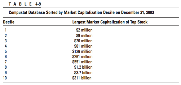A review of the Morningstar Mutual Fund database proves this. On December 31, 2003, the median market capitalization of the 1,215 mutual funds in Morningstar’s all equity, small-cap category was $967 million. That’s right between decile 7 and 8 from the Compustat universe—hardly small.