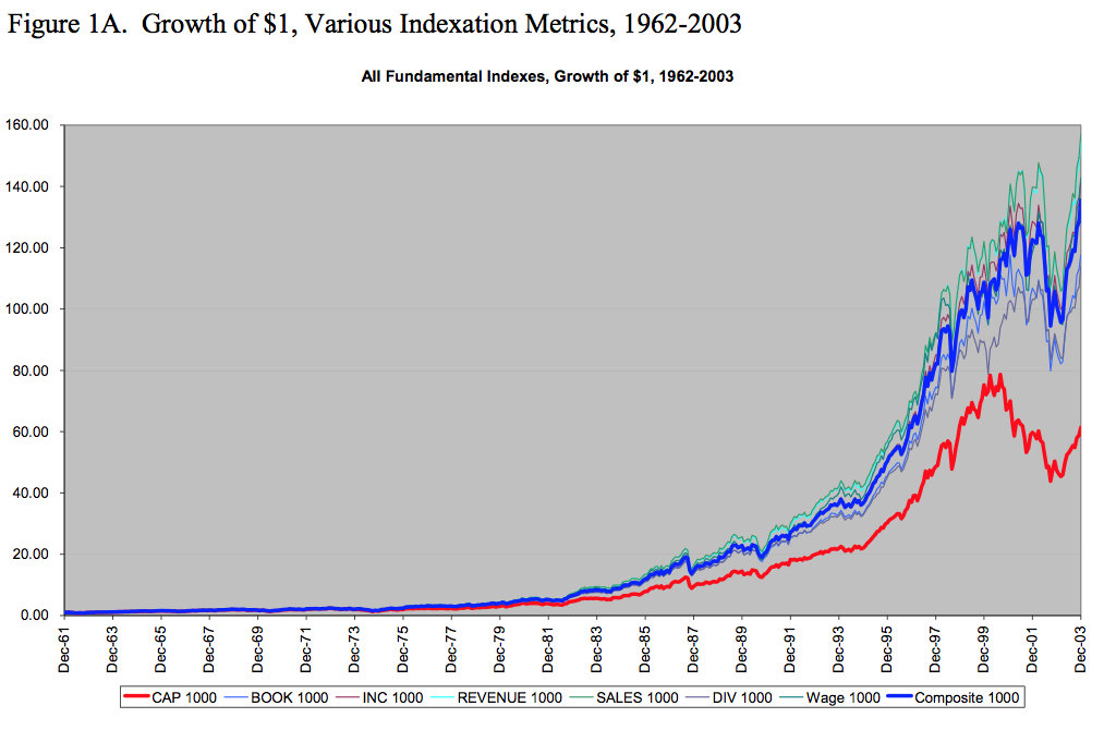 The classic paper on fundamental indexation is the 2004 paper “Fundamental Indexation” by Robert Arnott (Chairman of Research Affiliates), Jason Hsu and Philip Moore. The paper is very readable. Arnott et al argue that it should be possible to construct stock market indexes that are more efficient than those based on market capitalization. From the abstract: