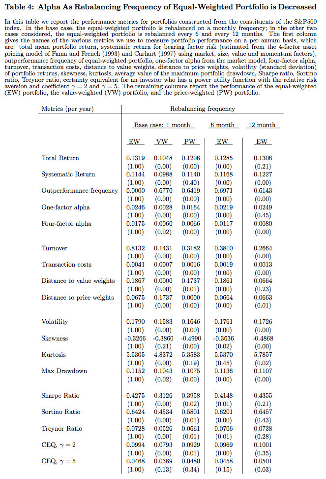 We rebalance the index only once a year, on the last trading day of the year, for two reasons. First, the financial data available through Compustat are available only on an annual basis in the earliest years of our study. Second, when we try monthly, quarterly, and semi-annual rebalancing, we increase index turnover but find no appreciable return advantage over annual rebalancing.