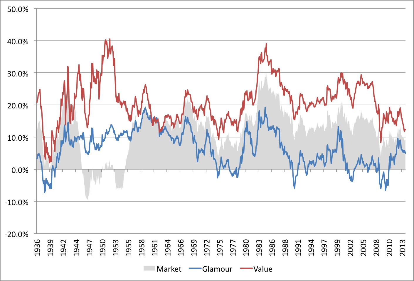 Benjamin Graham recommended maintaining a minimum portfolio exposure to stocks of 25 percent. Below we re-run the tests, but this time instead of kicking all of the portfolio into cash, we put only 75 of the portfolio in cash, and maintain 25 percent exposure to the value decile.